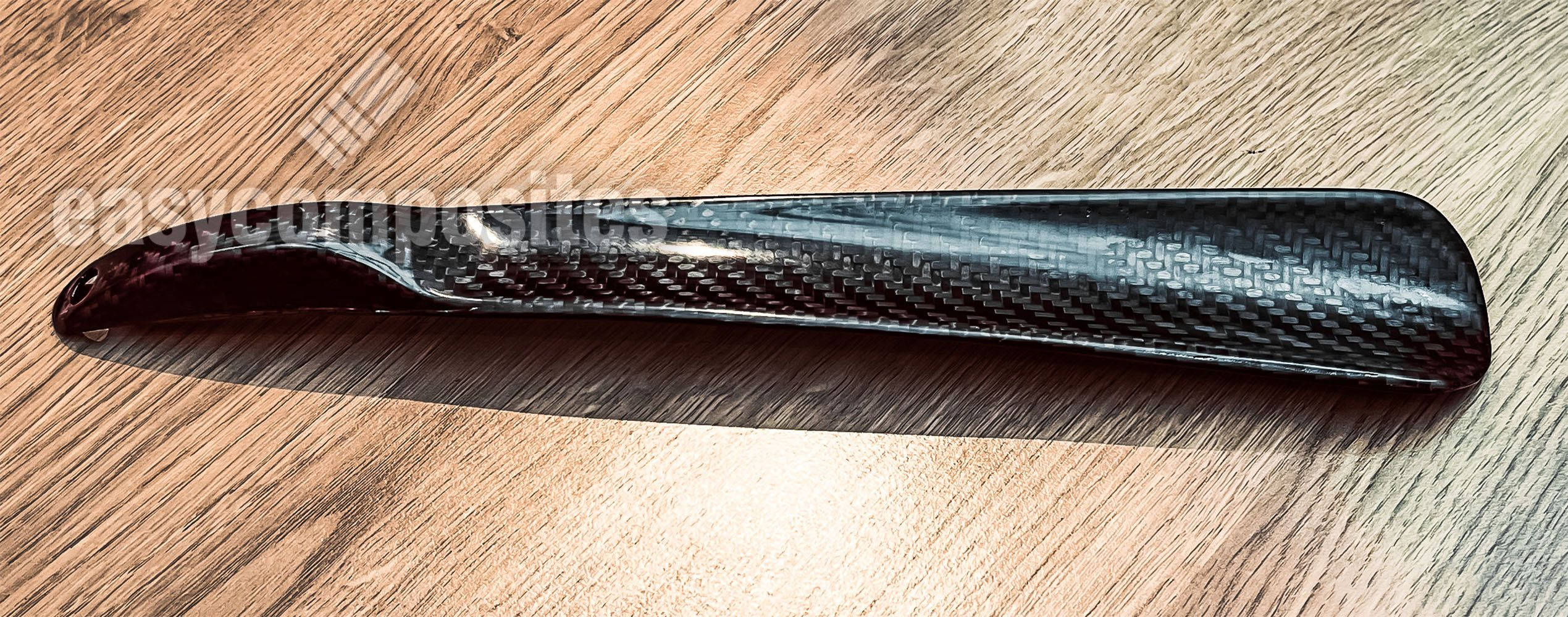 With his prior composite experience, Patric wanted to make a stronger shoe horn after the family's plastic one kept breaking. So he chose to use his experience to make it out of carbon fibre.