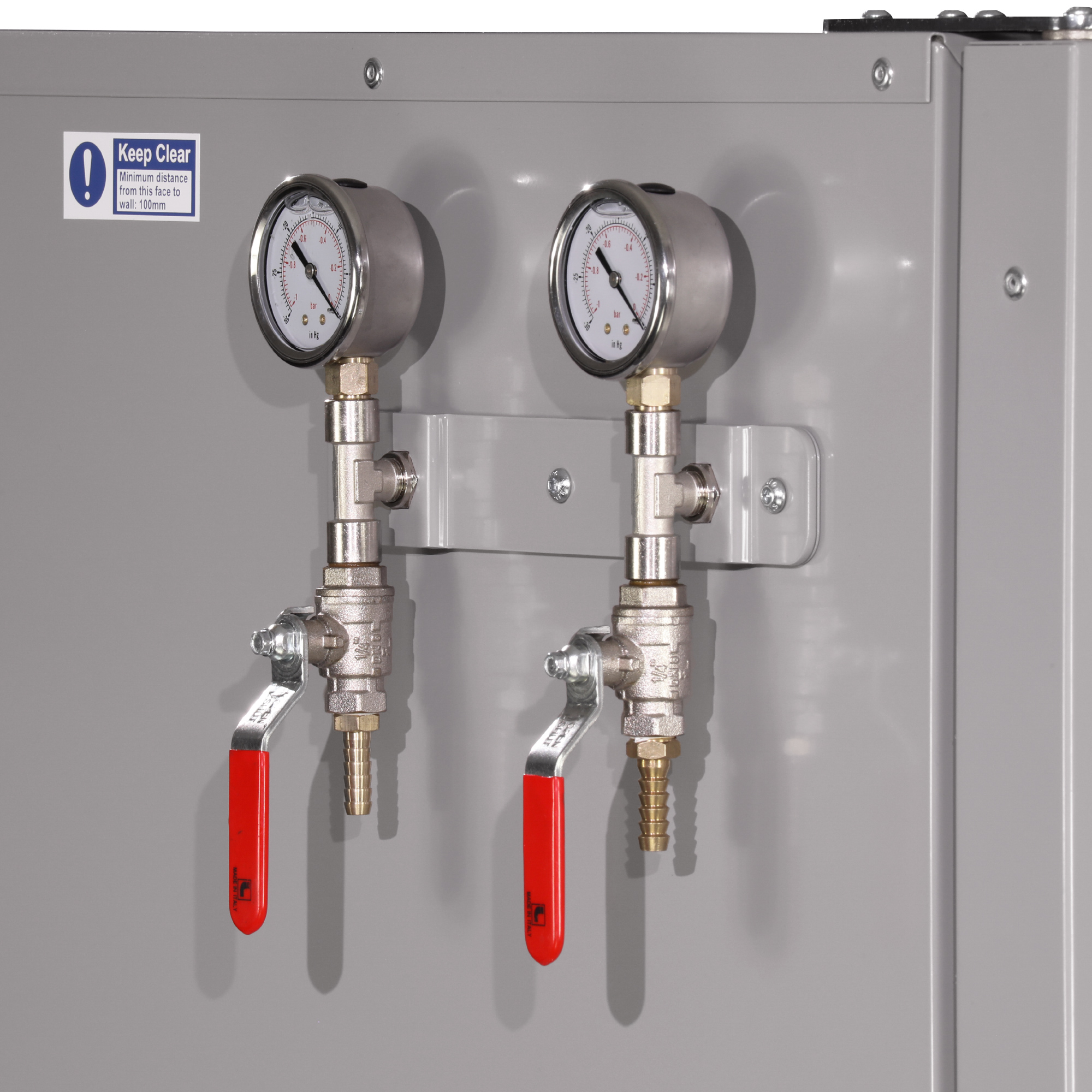 The 2-vacuum ports on the side of the oven allow the connection a vacuum bag inside the oven, to a vacuum pump outside of the oven. As standard the oven features ¼” BSP female sockets both inside and outside of the oven. By fitting an appropriately sized hose tail barb both inside and out, a basic connection can be established, however the optional vacuum valve assembly and gauge allows easy connection with the additional benefits of both a vacuum pressure readout and an isolating valve allowing the vacuum to be shut-off. The optional vacuum valve and gauge also includes hose tail barbs to suit the Easy Composites 8mm ID Silicone Vacuum Hose.
