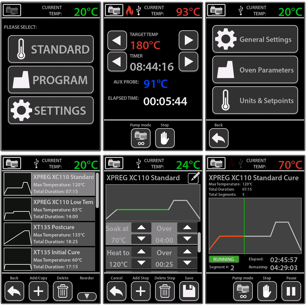 Temperature, ramp and soak are all fully programmable so recommended cure and post-cure cycles for different materials can be saved and run automatically for the ultimate in precision and consistency.