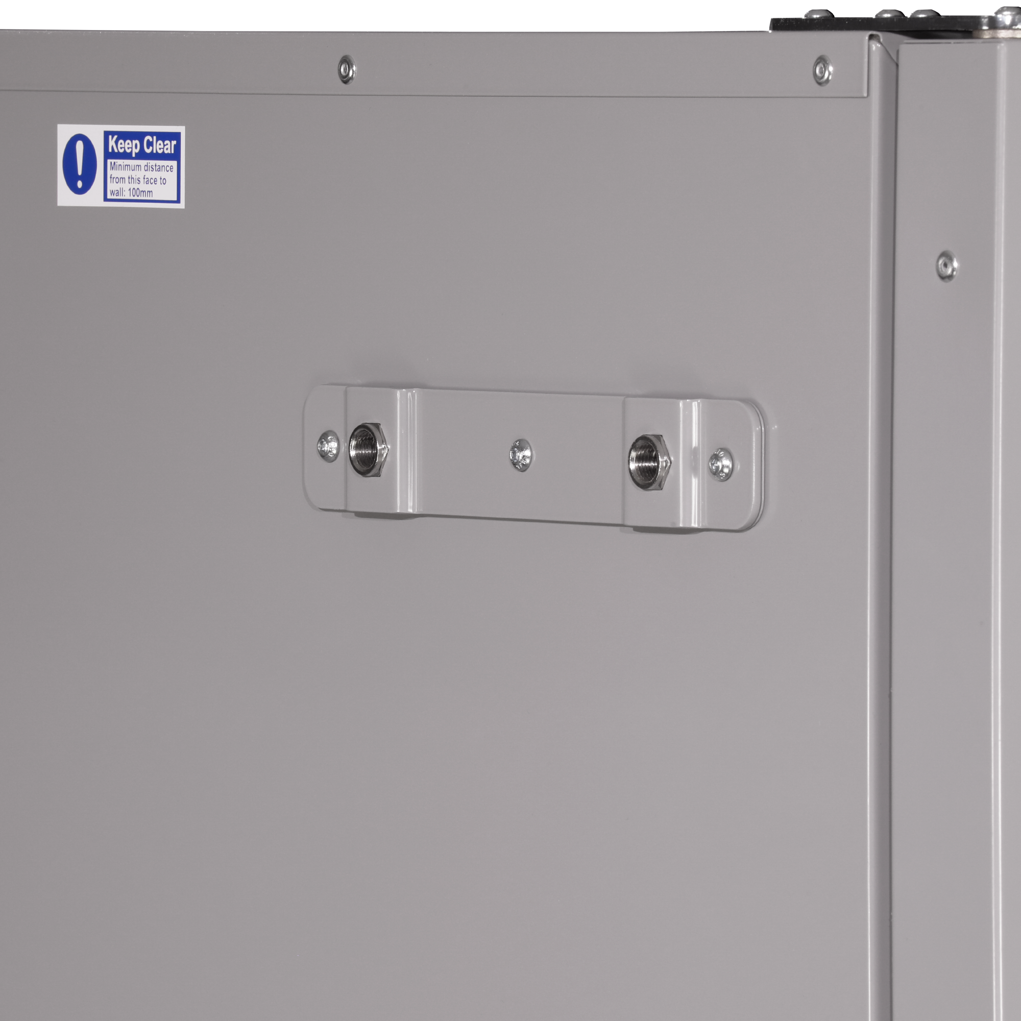 The oven requires 100mm to the rear to enable an electrical connection but a minimum of 50mm is allowable for ventilation if this connection can be recessed into the wall. 100mm is required on both sides. 100mm is required on top.