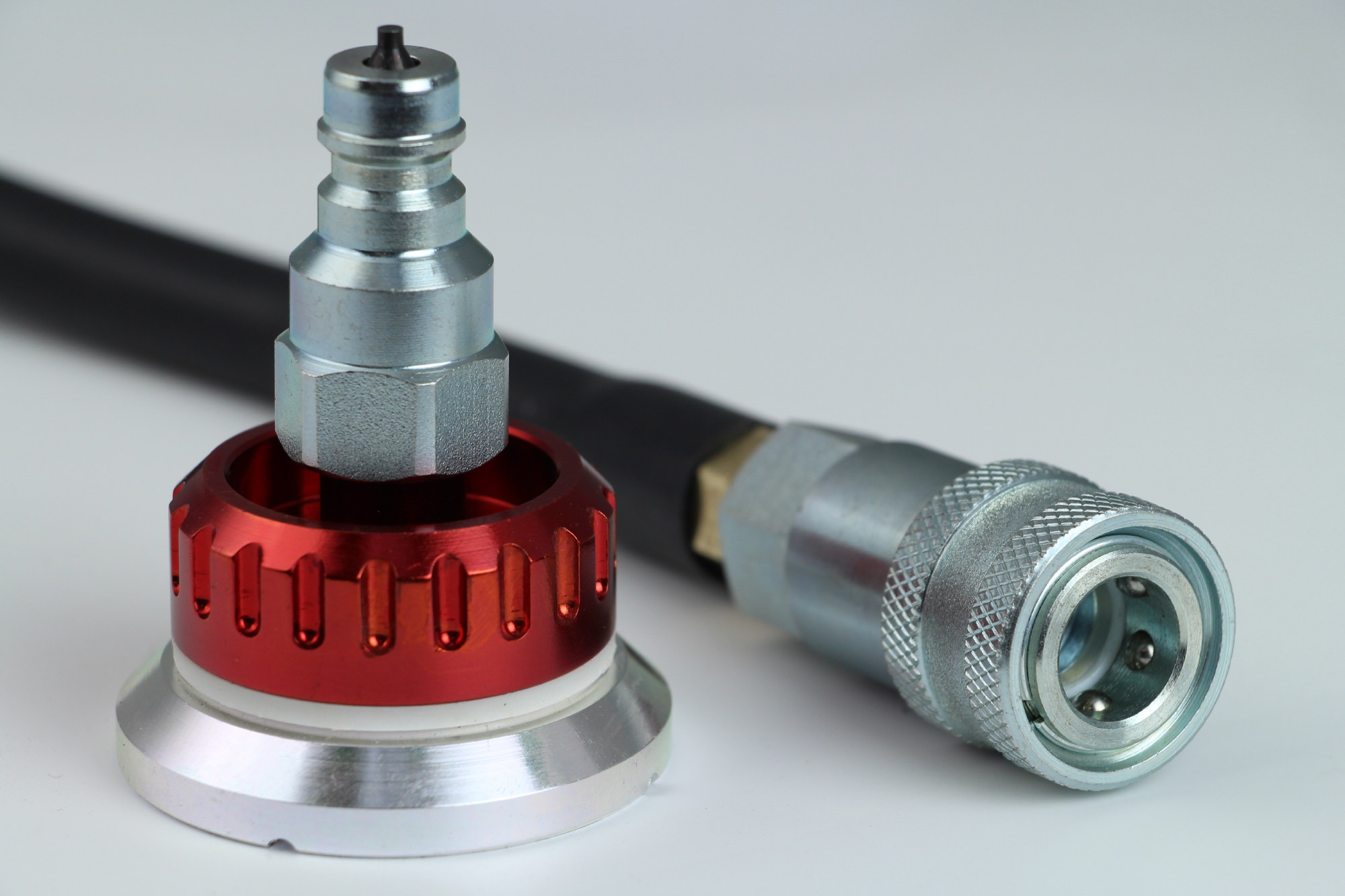 Connection is very straight-forward, simply pull back the spring-loaded outer ring on the female fitting and push the coupling together, then allow the ring to spring back into place which will lock the coupling. To separate the coupling pull the ring back and the coupling will spring apart.