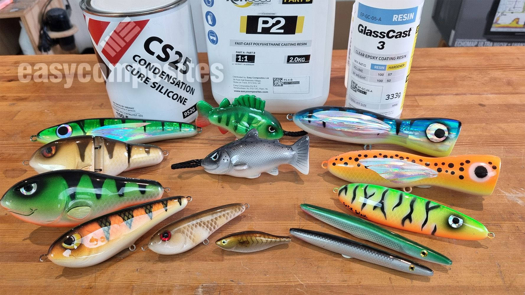 Jorgen quickly realized that he needed to up his game from wooden hand carved lures to a more reproduceable results. He therefore started casting lures in P2 Fast Cast PU resin in moulds he cast from CS25 silicone. Along the way he also ended up giving the lures a very durable coating of epoxy, and thereby making EasyComposites a key all round supplier for his lure making.