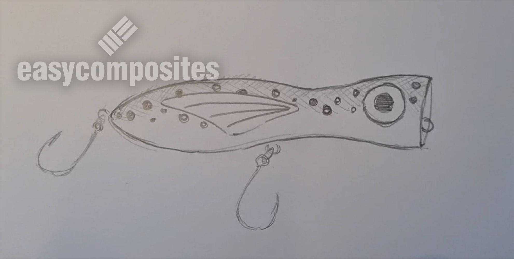 The first stage is to sketch a design on paper before drawing it in CAD using Fusion 360. The lure master can then be 3D printed and the print sanded and smoothed with the metal eyes added. This master is then used to cast a 2 part mould in CS25 Silicone.