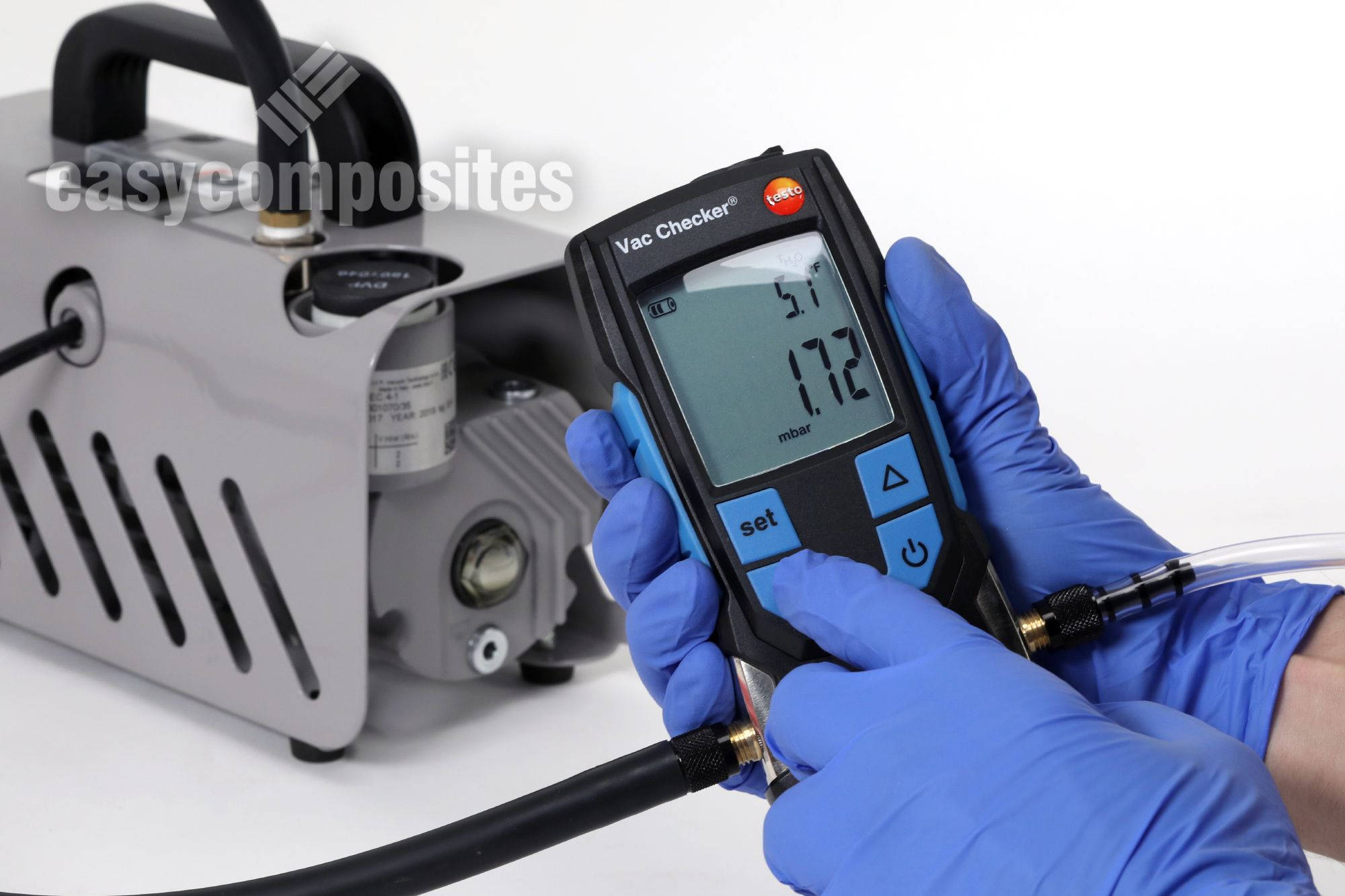 Vac Checker is a high precision, full scale digital vacuum gauge that will prove itself to be an invaluable tool in the professional composites workshop. Specifically developed and specified for composites use by DD-Compound and manufactured By Testo, this is an incredibly rugged instrument that allows vacuum drop-tests and system diagnostics to be performed significantly more quickly than using typical mechanical instrumentation.
